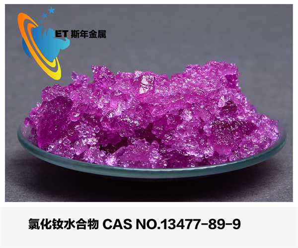 氯化钕是一种无机化合物,化学式为NdCl3• 6H2O,为紫色结晶。溶于水,18℃时,100mL水中可溶解水合物25g左右。溶于苯。加热至760℃,分解为氧化钕。